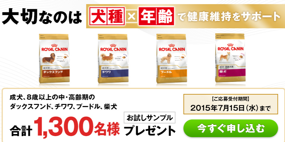 犬種×年齢 お試しサンプル50gプレゼント キャンペーン